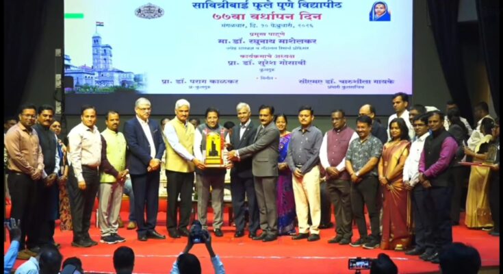 पुणे (देवकीनंदन शेटे, संपादक) : शिरूर शिक्षण प्रसारक मंडळाच्या सी.टी. बोरा महाविद्यालयाला सावित्रीबाई फुले पुणे विद्यापीठाचा शैक्षणिक वर्ष २०२५–२६ साठी ग्रामीण विभागातील पारंपरिक महाविद्यालय गटात ‘उत्कृष्ट महाविद्यालय’ पुरस्कार प्राप्त आहे. विद्यापीठाच्या ७७व्या वर्धापनदिनानिमित्त कुलगुरू डॉ. सुरेश गोसावी यांच्या हस्ते हा सन्मान प्रदान करण्यात आला. पुरस्कारामध्ये तीन लाख रुपये रोख, गौरवचिन्ह व प्रशस्तिपत्रकाचा समावेश आहे. संस्थेचे अध्यक्ष धरमचंद फुलफगर, सचिव नंदकुमार निकम व प्राचार्य डॉ. के. सी. मोहिते डॉ. सुनील भोईटे यांनी हा सन्मान स्वीकारला.