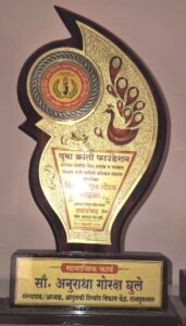 समाजशील न्यूज नेटवर्क, राजगुरुनगर,पुणे : (प्रा.सुभाष शेटे,कार्यकारी संपादक) – समाजातील दिव्यांग बांधवांच्या उन्नतीसाठी सातत्याने कार्य करणाऱ्या आपुलकी दिव्यांग विकास केंद्र,राजगुरुनगर संस्थेच्या अध्यक्षा सौ.अनुराधा गोरक्ष घुले यांचा नुकताच पुणे येथे झालेल्या एका विशेष समारंभात युवा क्रांती फाउंडेशन पोलीस मित्र संघटनेच्या वतीने गौरव करण्यात आला. त्यांच्या उल्लेखनीय सामाजिक कार्याची दखल घेत ग्राहक व पत्रकार संरक्षण, पोलीस मित्र आणि माहिती अधिकार संघटना यांच्या संयुक्त विद्यमाने त्यांना ट्रॉफी देऊन सन्मानित करण्यात आले.