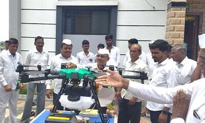 शिरूरच्या रावडेवाडी येथे ड्रोन द्वारे पिकांवर कीडनाशकऔषध फवारणी – सहायक कृषी अधिकारी नंदू जाधव यांचे मार्गदर्शन